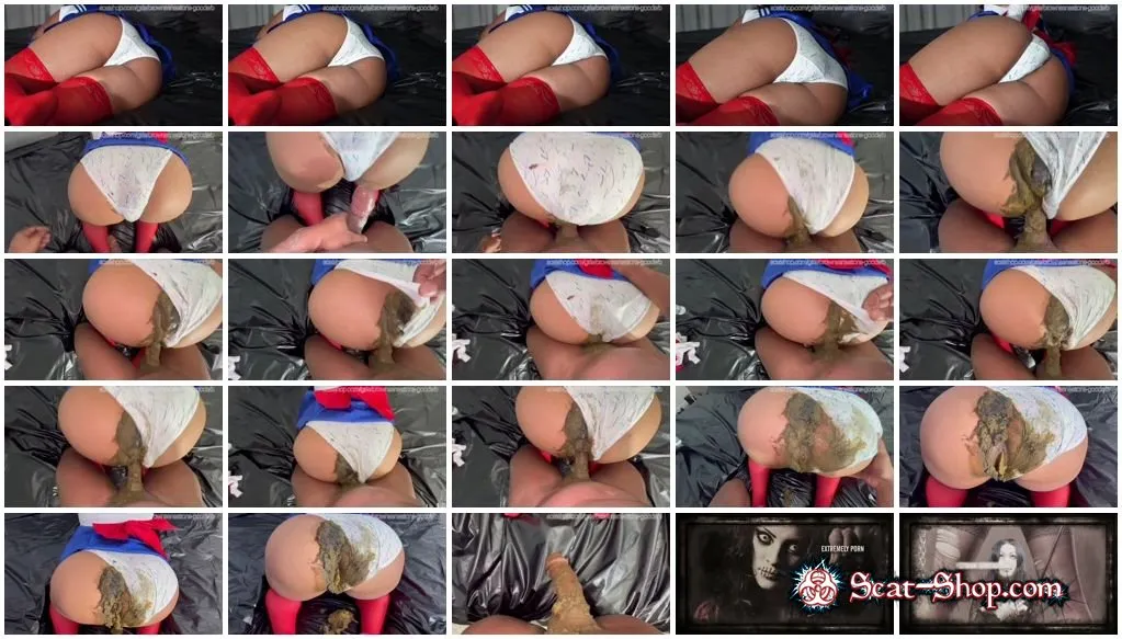Sailor Moon taking a big shit in her full back panties. Then getting her dirty panties pull to the side to get the shit fucked out of her while she continues to push more of her load out