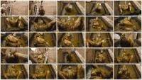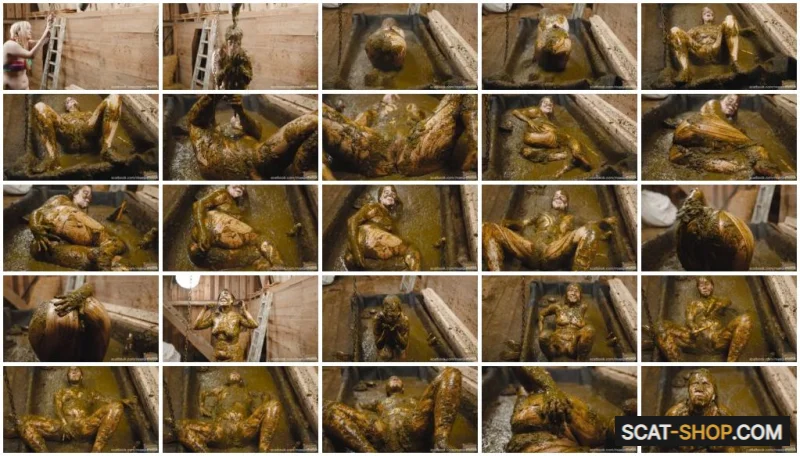 Lyndra Lynn loves exploring new things. Today she wants to try out the new Manure Shower, which is nicer than bathing in hot cow dung. She pulls on the chain and can hardly wait till the manure flows down on her. The manure starts flowing slowly at first but it gets faster quickly. She stands right under the pipe and covers her chest first, but then wants the full experience. She holds her head under the sloppy flow of cow dung and enjoys it visibly. Of course that turns her on, so she starts to undress and let everything drip down on her. She lays down in the basin and covers herself now completely. She positioned her pussy right under the pipe so the sloppy cow dung dripped right onto her pussy, which is an extremely nice feeling which arouses her a lot. She starts playing with the dung and grabs her dildo to fuck her wet pussy. Lyndra enjoys the experience very much and doesn’t hold back, she’s holding her head under the dripping pipe again so the big sloppy bits of cowshit are dripping all over her face again, she even opens her mouth because she wants to taste it. In the end she masturbates with her dildo while the creamy manure is hitting her clitoris hard.