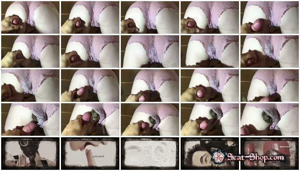 New panty pooping scat session 11, bonus wide angle, lace panties getting pooped into really slowly. She loves taking a poop on her bathroom slave and in her lovely pink, lace panties. 4 minutes 2 seconds of a perfect crap in her undies while her slave jerks it all over her ass. Sexy bathroom time.